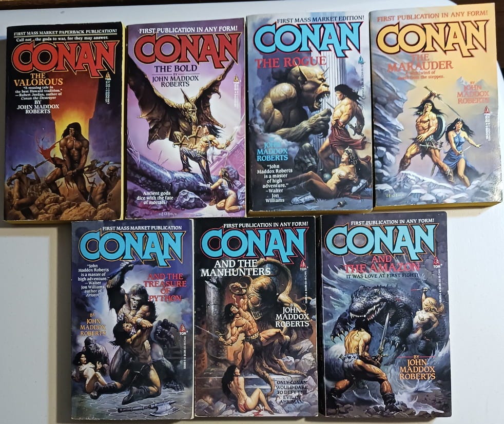 Conan (Black Gate): The name John Maddox Roberts (1947 – ) first came to my attention as a writer of Conan sword & sorcery pastiches from Tor. He wrote eight, and when I talk to other REH fans Roberts’ name is almost always listed near the top of the Conan pastiche writers.