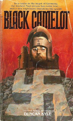 Fiction (Por Por Books): Black Camelot’ first was published in 1978; this Berkley Books edition (282 pp.) was issued in January, 1980. The cover artist is uncredited. Author Kyle published a number of paperback thrillers and adventure novels in the 1970s and 1980s. The cover for ‘Black Camelot’ presents the novel as a sort of ‘Castle Wolfenstein’ adventure, wherein a commando team must penetrate a Nazi redoubt where some sort of secret science fictional or supernatural program is under way, with the goal of ensuring victory for the Third Reich.